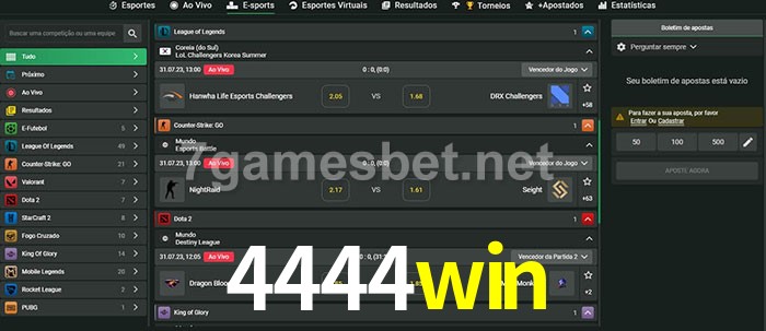 A aposta 4444win oferece aos jogadores a experiência mais conveniente de apostas em eSports!